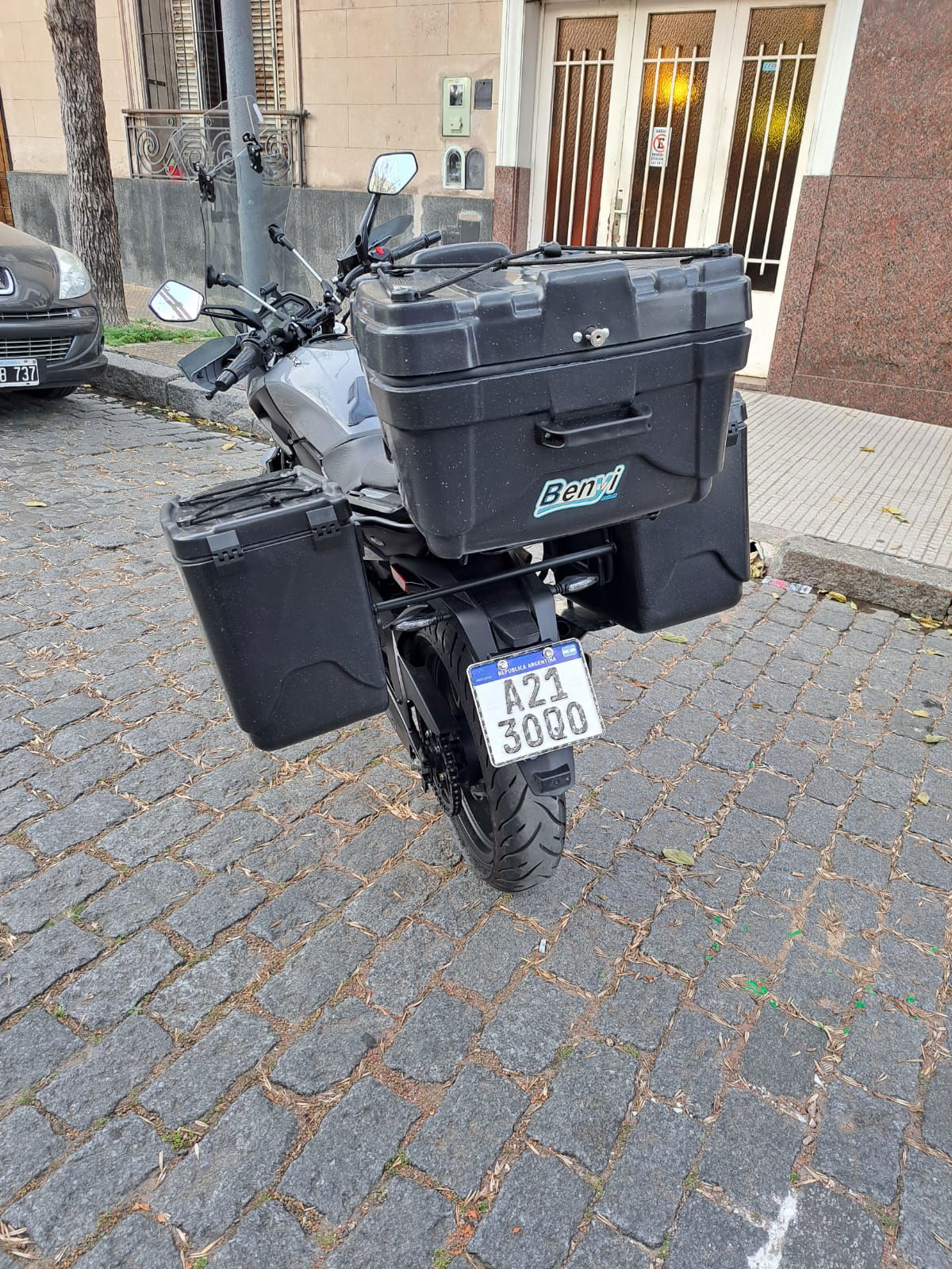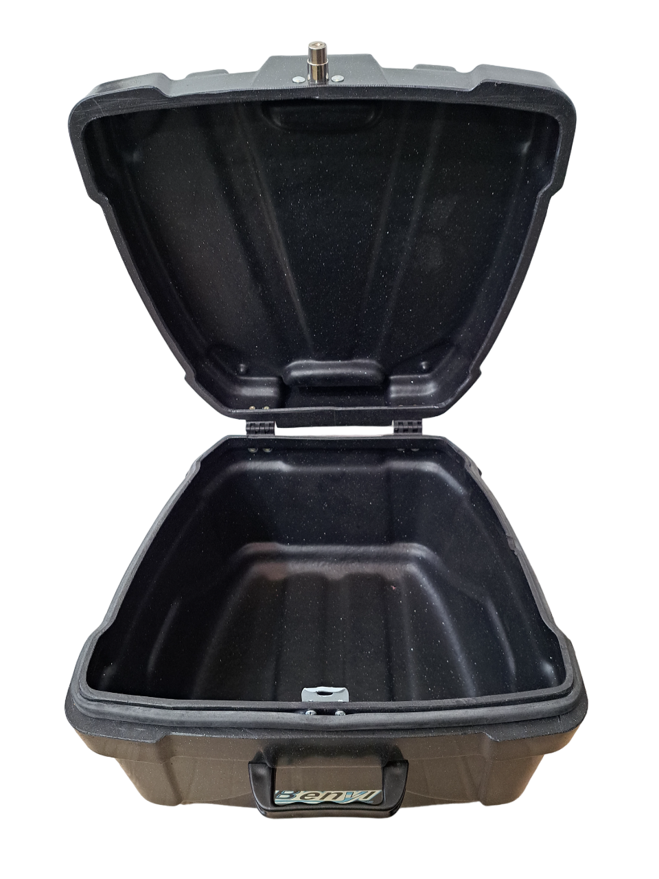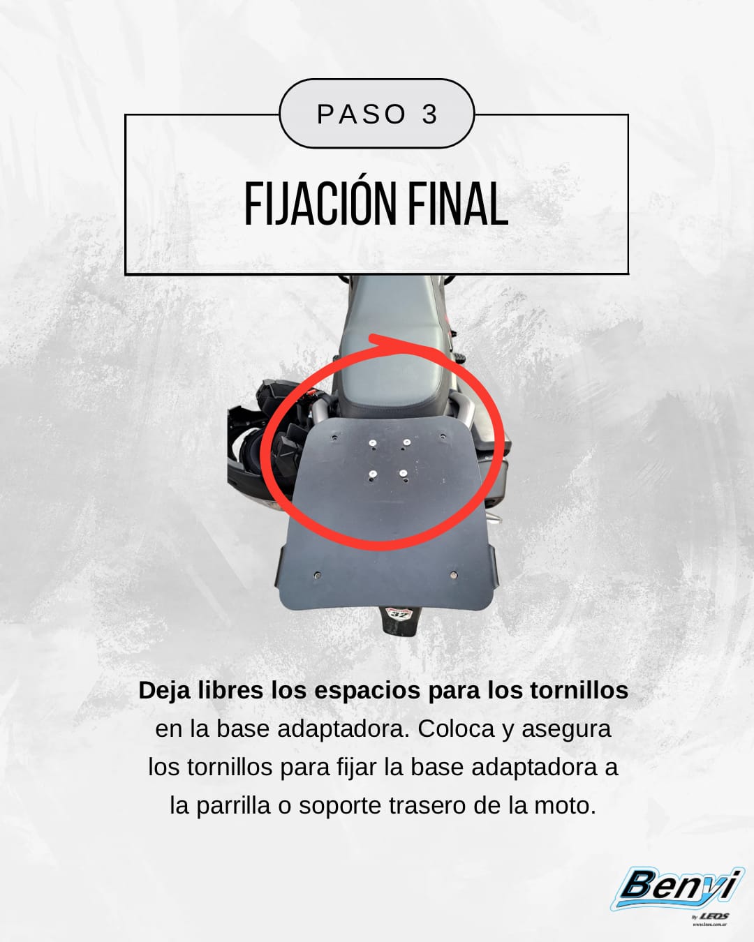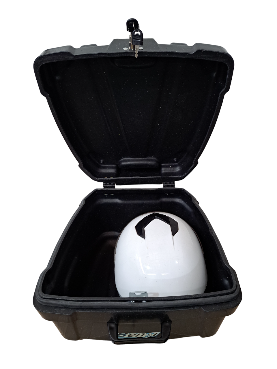 Las Valijas Benyi están fabricadas con polietileno de primera calidad con un espesor de 6mm, generando así la suficiente robustez para resistir todo tipo de uso, incluso golpes y caídas. Vienen equipadas con un sistema de fijación que se adapta a la mayoría de los soportes y el mismo debe ser colocado según cada modelo de portaequipaje. El sistema de cierre es con llave, lo cual brinda un uso cómodo y seguro. Sobre la tapa se puede cargar equipaje y sujetarlo mediante las cuerdas elásticas o bien atarla con sogas desde los 4 puntos de fijación (admite el paso de una soga de hasta 5mm). Sobre la pared trasera se puede adosar un bidón para hasta 5l. En la unión de la tapa con la valija contiene un burlete que asegura un sellado óptimo para el agua y polvo. La disponibilidad de colores es de negro con pintas blancas.